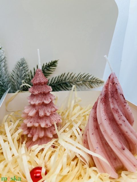 Rózsaszín Csillámos Fenyőfa Gyertyaszett