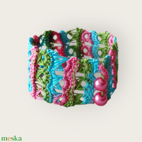 Csipke karkötő 3 soros pink-türkiz