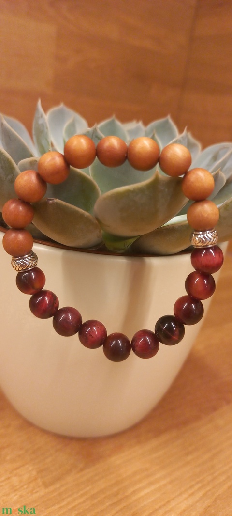 Magenta Tigrisszem-Szantálfa ásványkarkötő