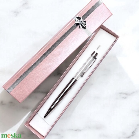 Fehér kvarc ásvány szemcsés golyóstoll díszdobozban ajándékozásra kész 5673703