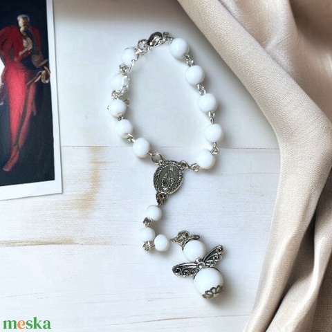 Védelmező Angyal Autós rózsafüzér, tizedes rózsafüzér fehér jáde ásványokból 5673711