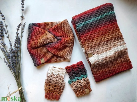MÉZESKALÁCS fülvédő-körsál-kézmelegítő szett