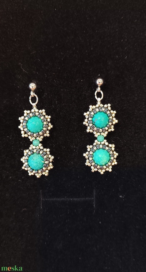 Üveggyöngy fülbevaló türkiz howlit ásványgyönggyel