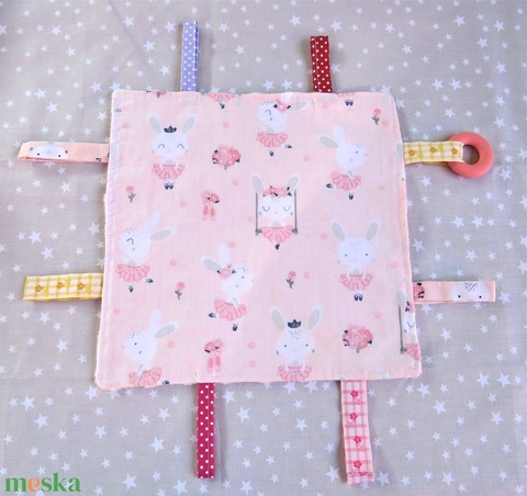 - Anyaga: pamuttextil, minky anyag, pamutcérna, szalagok, szilikon karika