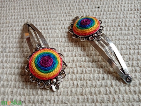Szivárvány dísz hajcsat , textil ékszer, fonalékszer, Szivárvány ékszer