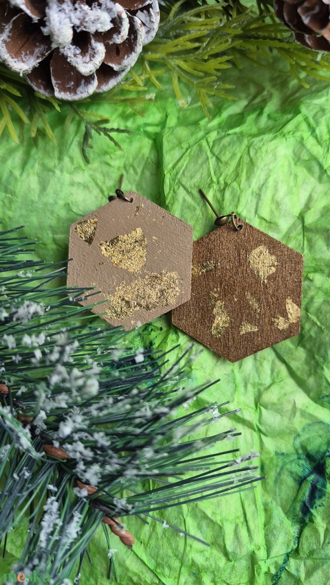 Absztrakt nagy alakú barna-arany fa fülbevaló