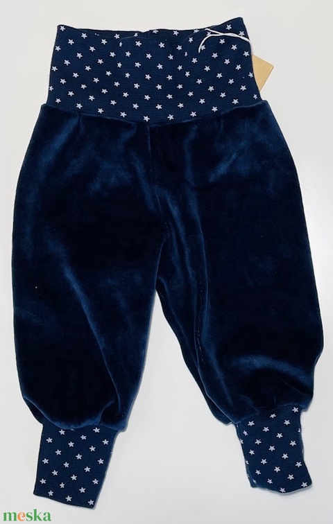 Sötétkék bébiplüss nadrág, csillagos passzéval