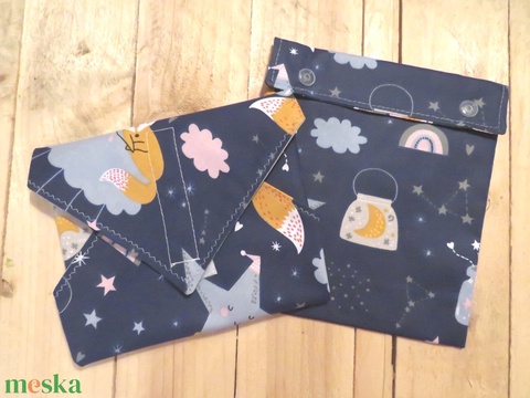 Gyermek szendvics csomagoló garnitúra színes vízhatlan belsővel - Jó éjt kis rókás - Akció!