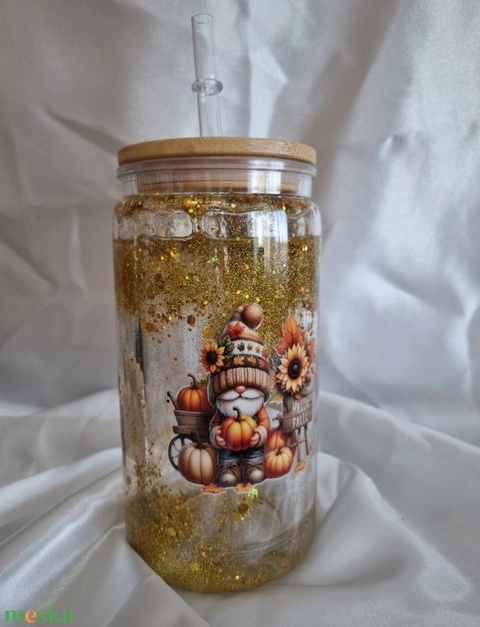 Egyedi dupla falú csillogós pohár őszi manók 2