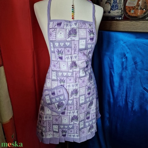KTN03/04/05 - Borostyán, levendula és pöttyös fodros, zsebes konyhai kötények