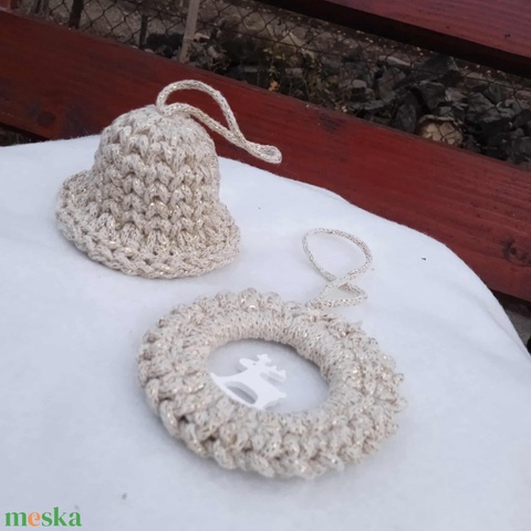 Beige-arany horgolt karácsonyfa dísz