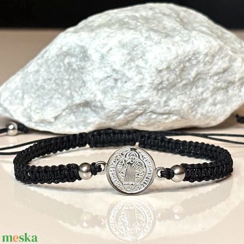Szent Benedek nemesacél medálos állítható makramé karkötő 5674003