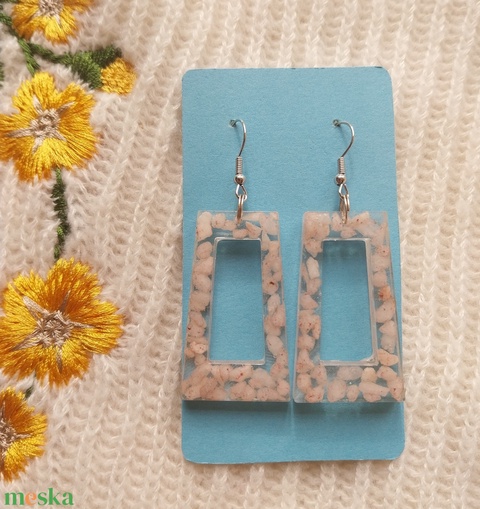 Rózsaszín kavicsos műgyanta fülbevaló