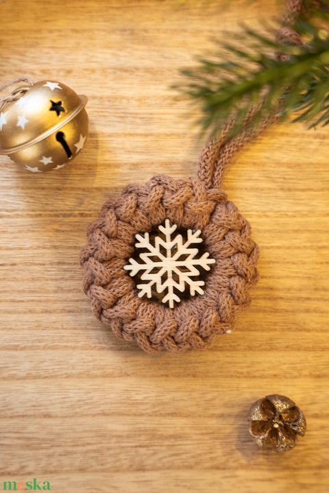 Horgolt karácsonyfadísz kereszt/csavart mintával fa hópehellyel