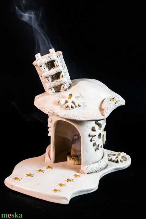 Kerámia füstölő házikó arany