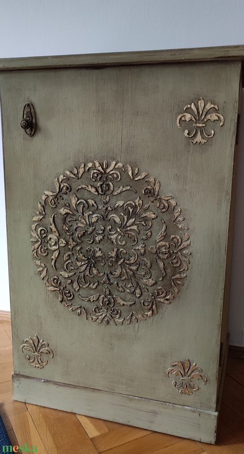 - Anyaga: fa art deco, füstfólia, wax, krétafesték