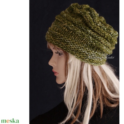 AMY-SAPI / olív - trendi kézzel kötött sapka