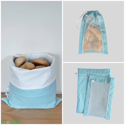 Frissentartó kenyeres zsák+bevásárló zsák türkizzöld pöttyös