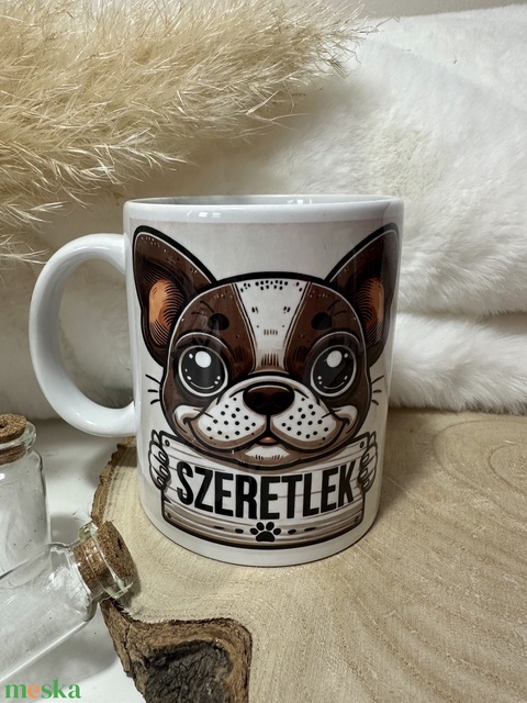 Valentin-napi francia bulldog-os bögre "SZERETLEK" felirattal