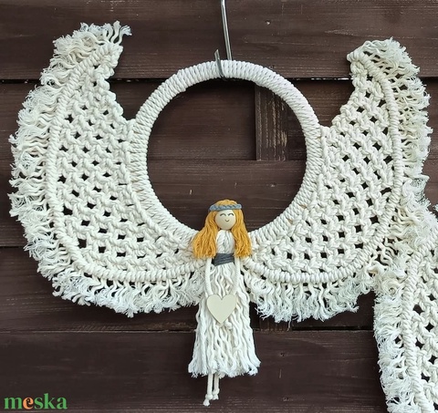- Anyaga: fa karika, makramé fonal, fagolyó