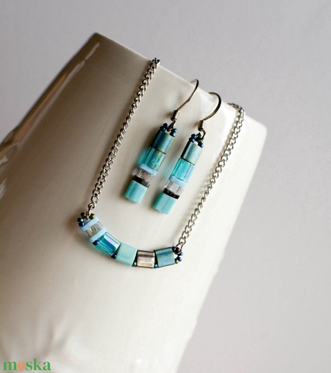 PiciPixel nyaklánc türkiz – minimalista geometrikus ékszer (41 cm)