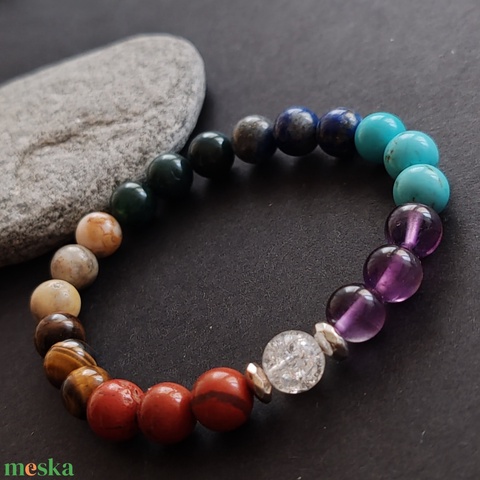 ametiszt, türkinit, lápisz lazuli, mohaachát, csipke achát, tigrisszem, vörös jáspis, hegyikristály, gumiszál