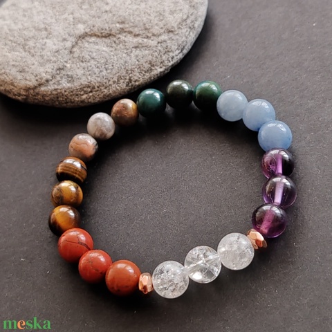 - Anyaga: ametiszt, mohaachát, csipke achát, tigrisszem, vörös jáspis, hegyikristály, kék kvarc, gumiszál