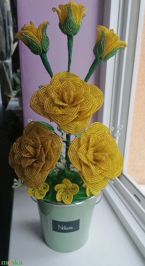 Gyöngyből készült sárga rózsa