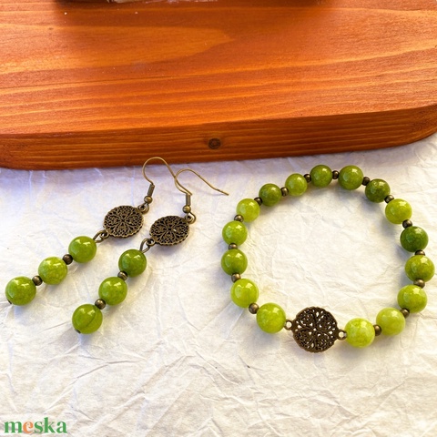 Zöld szőlő - olivin karkötő/fülbevaló szett