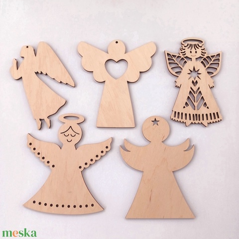 Ünnepi angyalszett – 5 darab lézervágott, díszes fa dekoráció (15 cm)