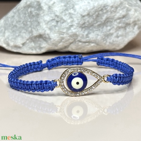 Védelmező csomózott makramé karkötő strasszköves nazar szen medállal