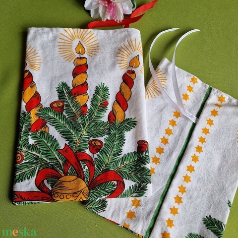 DCS100 - Gyertya mintás vászon ajándéktasak, mikulás zsák, bortartó