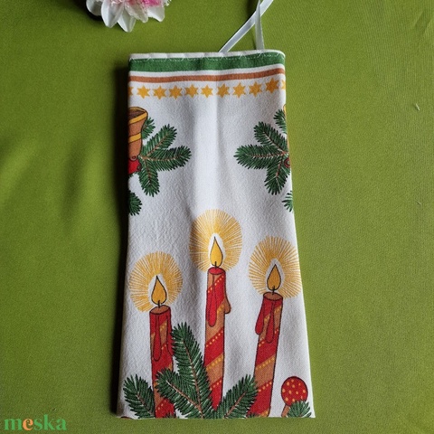 DCS103 - Gyertya, gomba, csengő mintás vászon ajándéktasak, mikulás zsák, bortartó