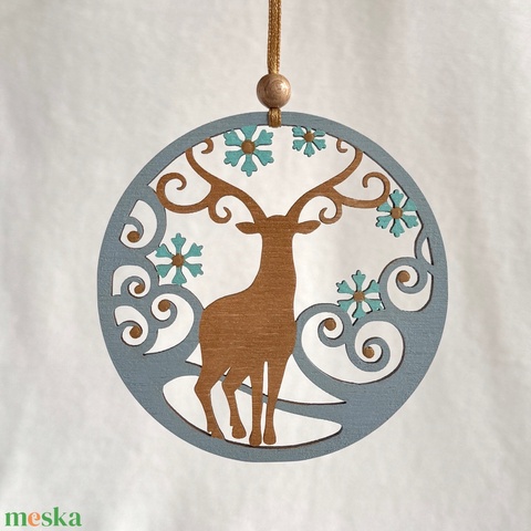 Téli szarvas jégkék és arany kézzel festett karácsonyfadísz