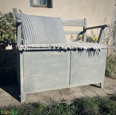 Vintage felújított karospad, lóca, népi pad, tároló láda, ülőpad, régiség
