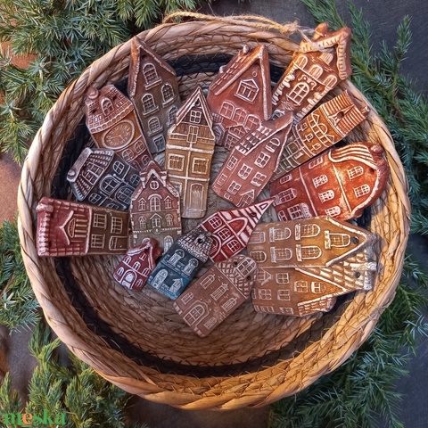 Rusztikus házak karácsonyfadíszek 16 db/szett
