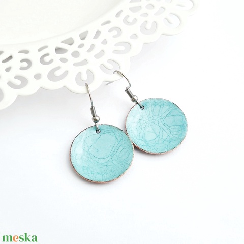 Tűzzománc homorú kerek fülbevaló - világos türkiz