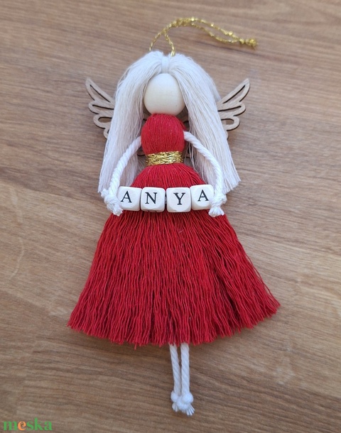 Makramé angyal, karácsonyfadísz, angyaldísz - ANYA (piros)