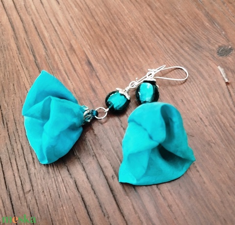 Türkiz hernyóselyem virág lógós fülbevaló indiai gyönggyel