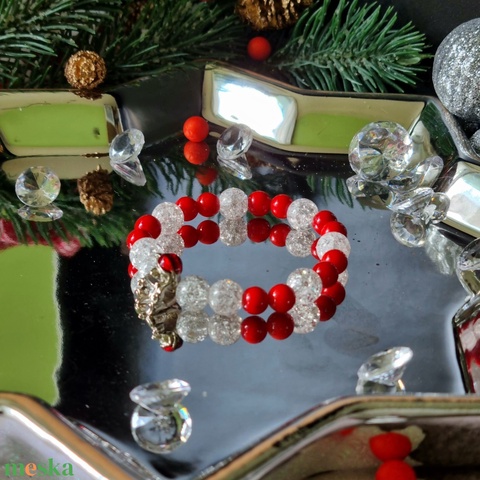 Mackós, hegyikristály, piros jáde gyermek karkötő