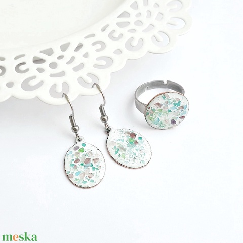 Színes szórt nemesacél tűzzománc gyűrű és fülbevaló