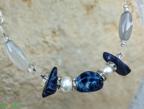 Kék achát és igazgyöngy nyaklánc, nyakék