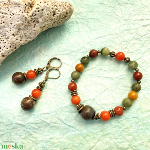 Őszi erdő - vegyes ásvány karkötő/fülbevaló szett