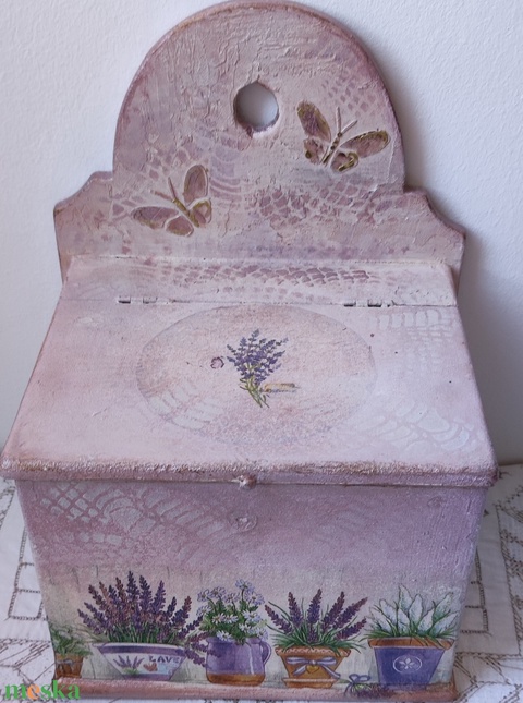 Levendulás antik, felújított fali sótartó