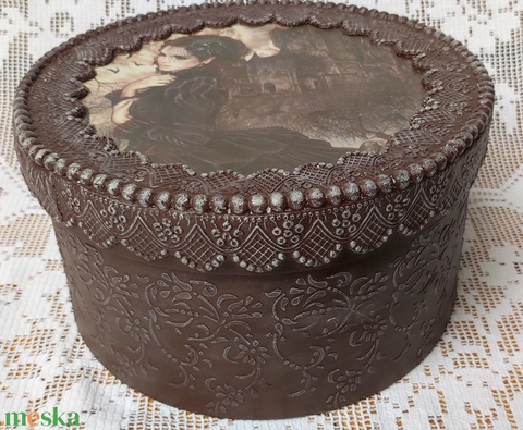 Különleges technikával készült nagyméretű kerek doboz