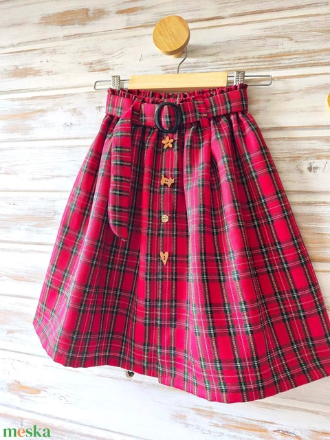 Skótkockás midi szoknya övvel