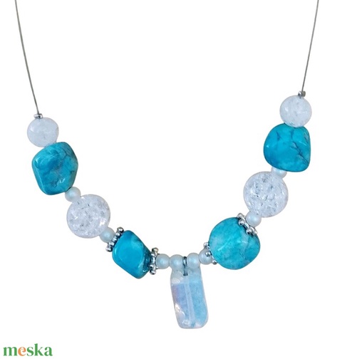 Fehér és kék ásvány nyaklánc, nyakék