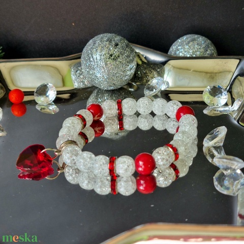 - Anyaga: gyumidamil, hegyikristály, jáspis, szív kristály charm, piros strasszos köztes