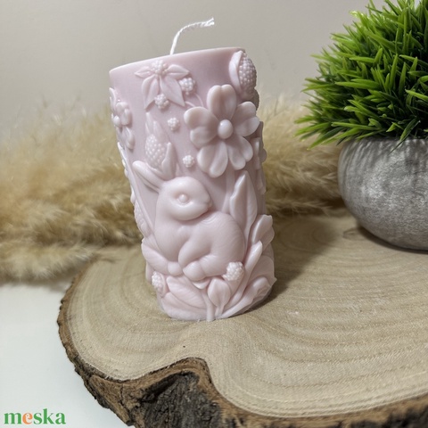 Húsvéti Nyuszis Dekor Henger Gyertya - Púder Rózsaszín