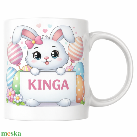 Egyedi névvel ellátott húsvéti nyuszis bögre